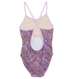 Play in the sand or water in the Tidepools Girls’ Incense Lilac Crossback One Piece Swimsuit (Big Kid).